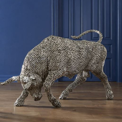 Estatua de toro hueca de acero inoxidable, escultura grande para exteriores, artesanías de Metal, gran oferta