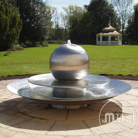 庭の美しい球のステンレス鋼の噴水の彫刻