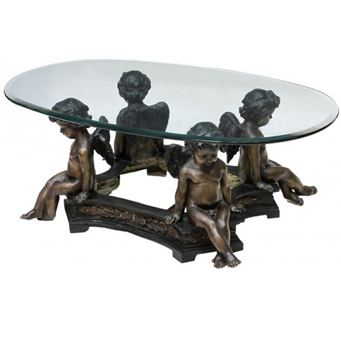 Casa de café bronce cuatro querubines escultura de mesa de café de Base