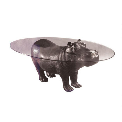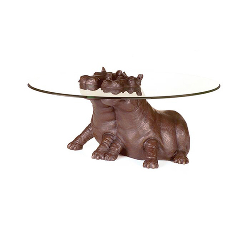 Arte decoración Animal escultura de bronce hipopótamo mesa de café Base estatua